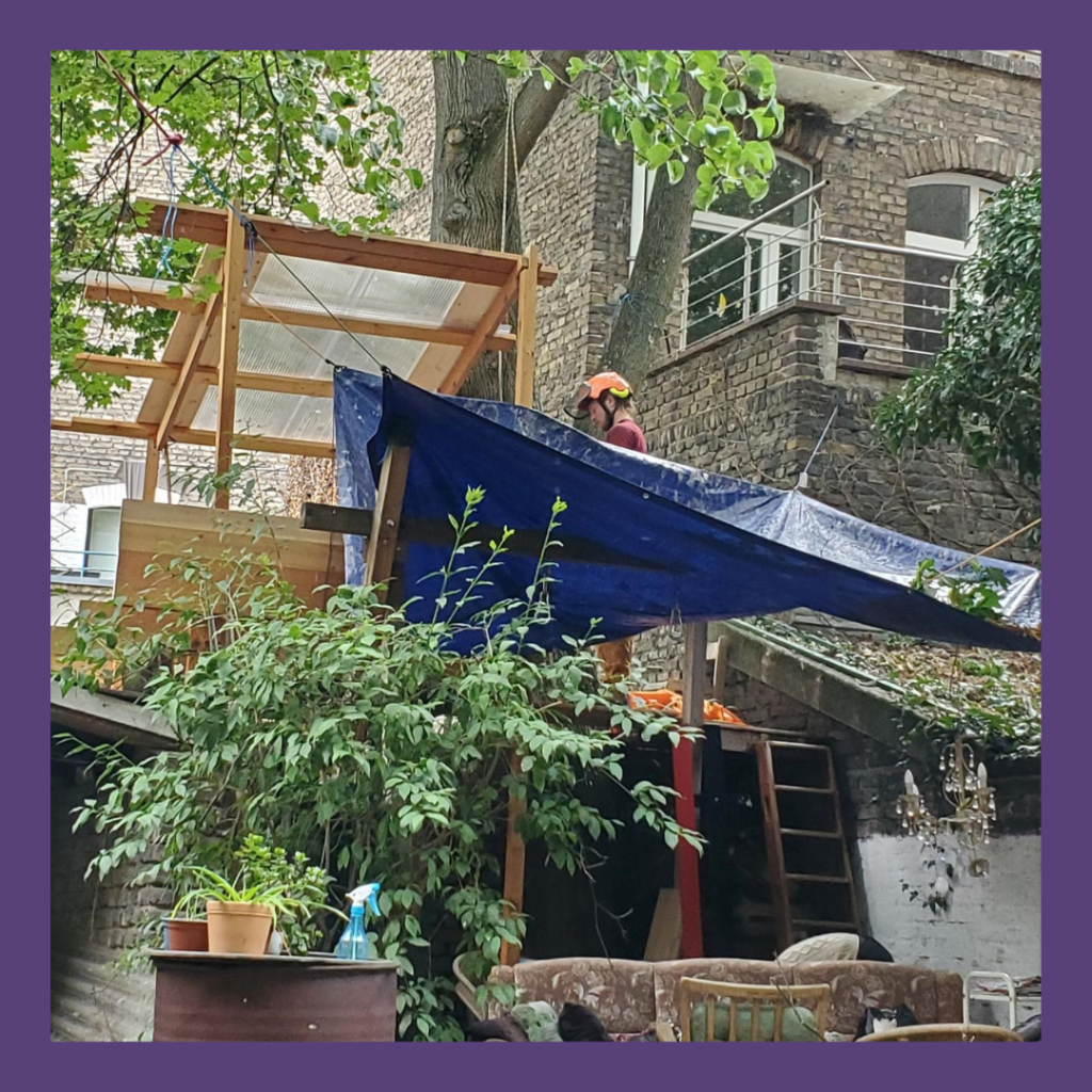 Diesen Frühling und Sommer wird fleißig in unserem Garten im Hinterhof gewerkelt! Aus Sicherheitsgründen mussten wir uns leider von unserer kranken Birke verabschieden. Unser schöner großer Ahorn hat eine Kronensicherung bekommen und neben unserem Draußen-Wohnzimmer entsteht ein neues kleines Häuschen. Es gibt immer was zu tun und dank eurer Unterstützung dürfen wir nun selbst entscheiden und gestalten!